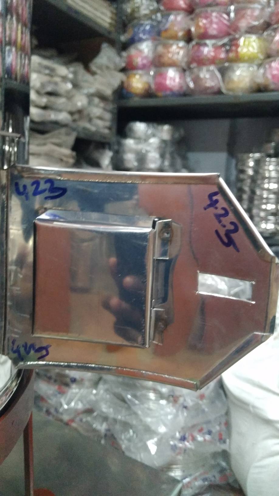 Sri Nataraja Metals, Madurai, offers a high-quality Stainless Steel Temple Donation Box (Undiyal) designed for durability, security, and long-lasting use. Made from premium Stainless Steel, it is ideal for temples, homes, and charitable organizations. Explore our wide range of Stainless Steel Utensils, Cookware, and Utility Products at the best prices. Shop now for superior quality and craftsmanship! Product Details: Material Stainless Steel Usage/Application: Mandir,Temple Color: Silver Shape : Round Surface Finish: Polished Steel Undiyal for Madurai 00no - 1.0 feet -1600/- 3kg 0no. - 1.3 feet - 1900/- 4kg 1no. - 1.7 feet - 2200/- 4.5 kg 2no. - 2.0 feet - 2500/- 5kg 3no. - 2.2 feet - 2900/-5.5kg 4no. - 2.5 feet - 3600/-6kg 5no. - 2.8 feet - 4600/-6.3kg 6no. - 3.2 feet - 5300/-6.8kg 7no. - 3.6 feet - 6300/-8kg 8no. - 3.8 feet - 8600/-8.7kg 9no. - 4.2 feet - 10600/-9.5kg 10no - 4.6 feet - 12600/-10.5 kg 11no - 5.0 feet - 16600/- 12kg 12no - 5.3 feet - 18600/- 13.5 kg All including stand and kalasam height